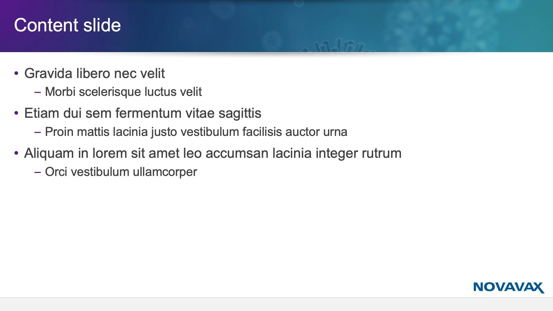 While working at a design agency for the life sciences I designed this PowerPoint template for NovaVax. It allows them to visualize their data and brand in a simple, appealing, and easy to use template.