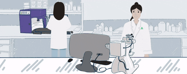 Once the storyboard was completed, I started building out assets and working out the motion in each scene. My process was to determine how I wanted the assets to move, take basic reference pictures, build out the individual layers in Illustrator, then animate them in After Effects. For some assets, like the Western Blot device, and the pipette, it was necessary to build out additional layers in After Effects and animate them frame-by-frame.